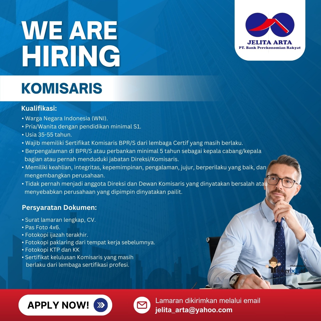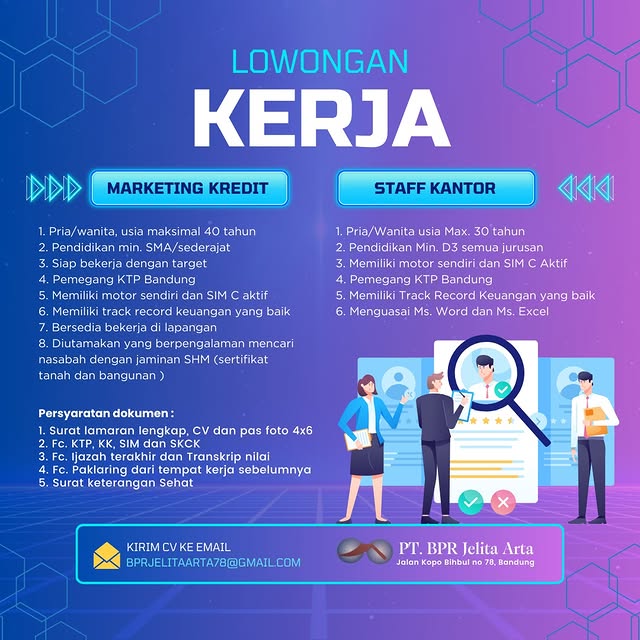 Beranda Tentang Kami Visi Misi Laporan Karir Produk BPR Kredit Modal Kerja Kredit Konsumsi Kredit Bayar Bunga Galeri BPR JELITA ARTA Hubungi Kami